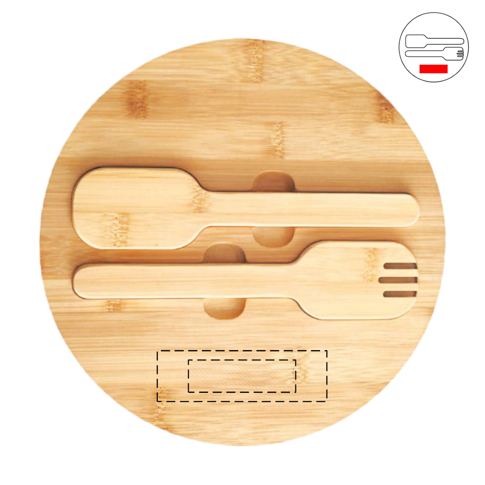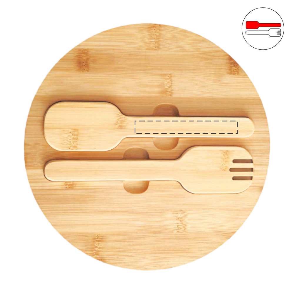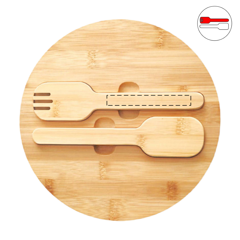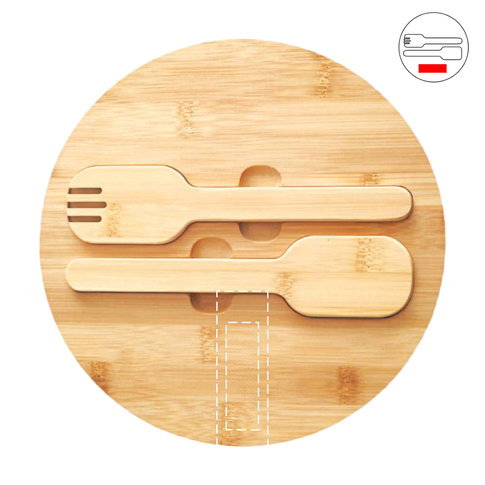 Slakom EAT HEALTHY: grote roestvrijstalen kom met bamboe deksel en bamboe slacouverts bevestigd aan het deksel met magneten, inhoud ca. 3 liter