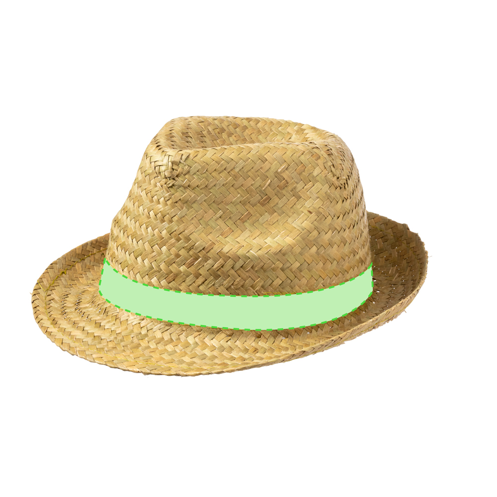 Strohoed. Gemaakt van gevlochten stro in natuurlijke kleuren en gemaakt om ademend te zijn. Met een binnenband voor comfort en verkrijgbaar in groen en naturel kleur.