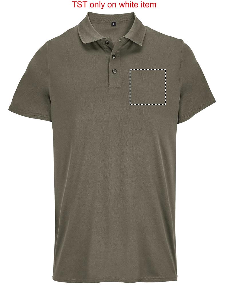 SOL'S PITCHER UNISEX POLO, sportpolo, 100% gerecycled polyester, korte mouwen, genaaid model, verstevigde sluiting met 3 ton-sur-ton knopen, nekband, geribde kraag, geschikt voor sublimatie. Raadpleeg de maattabel in de productdocumentatie voor de juiste maat.