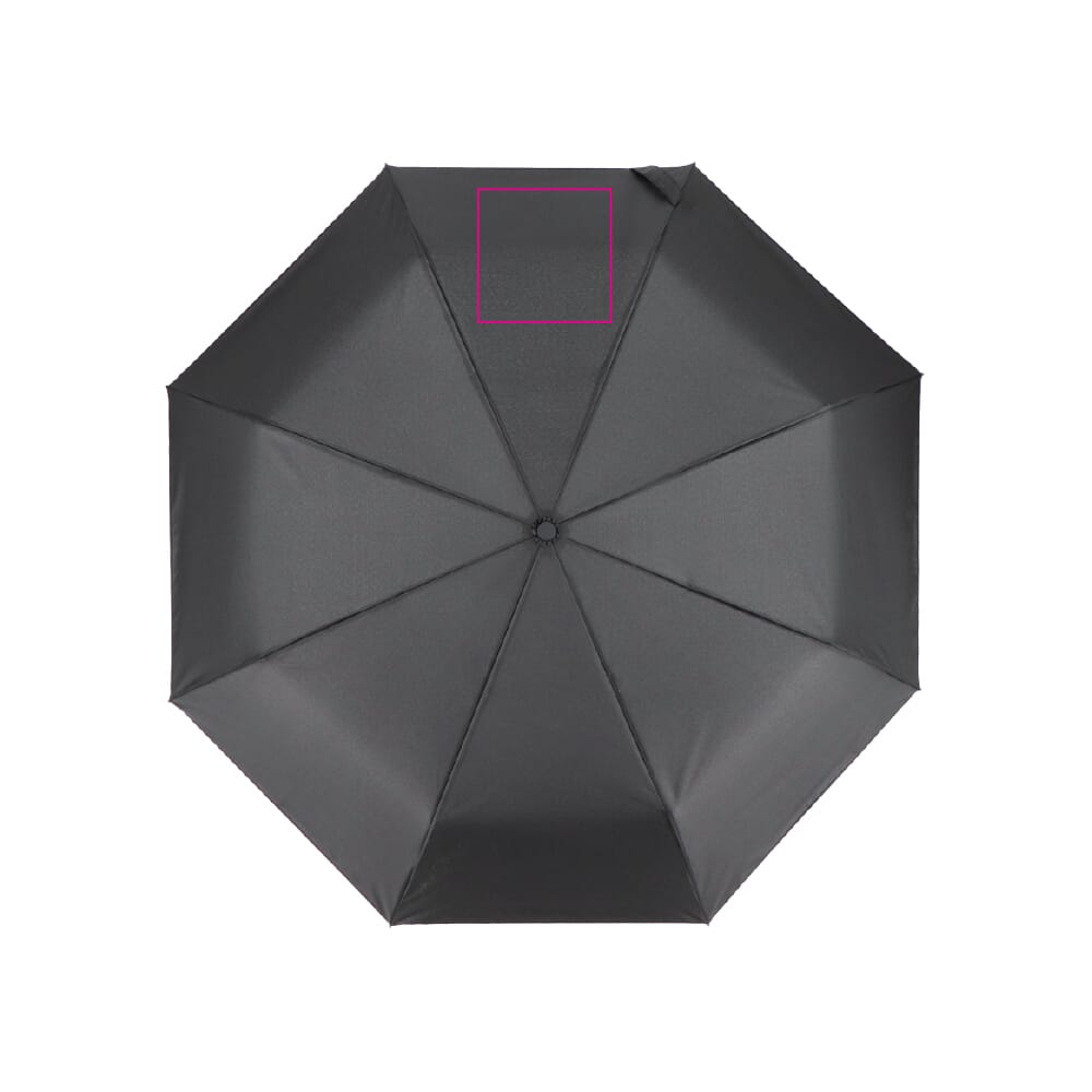 Deze 21" vouwparaplu is bestand tegen wind met een fiberglas frame en Pongee doek. Automatische opening en sluiting. Inclusief hoes en koord aan het handvat voor extra veiligheid. Het ABS-handvat zorgt voor een comfortabele grip.