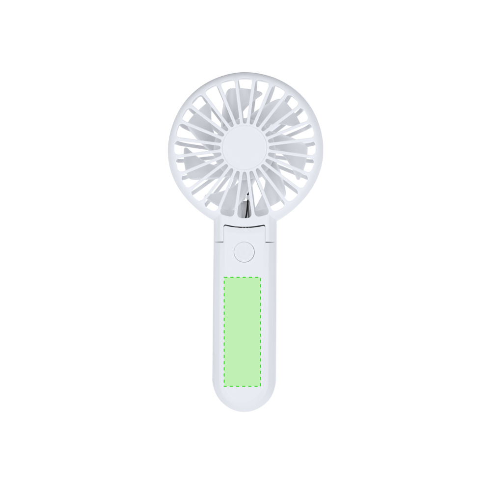 Ventilator met drie snelheden, aanpasbaar via een handige aan- en uitknop aan de voorkant. De articulerende kop maakt het gemakkelijk om het te richten, zich aanpassend aan elk vlak oppervlak voor comfortabel en veelzijdig gebruik.Met een batterij van 400 mAh, compatibel met USB Type C-verbindingen - kabel inbegrepen -.